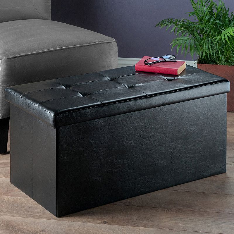Winsome Ashford Tufted Coffee Table Storage Ottoman, Black Description